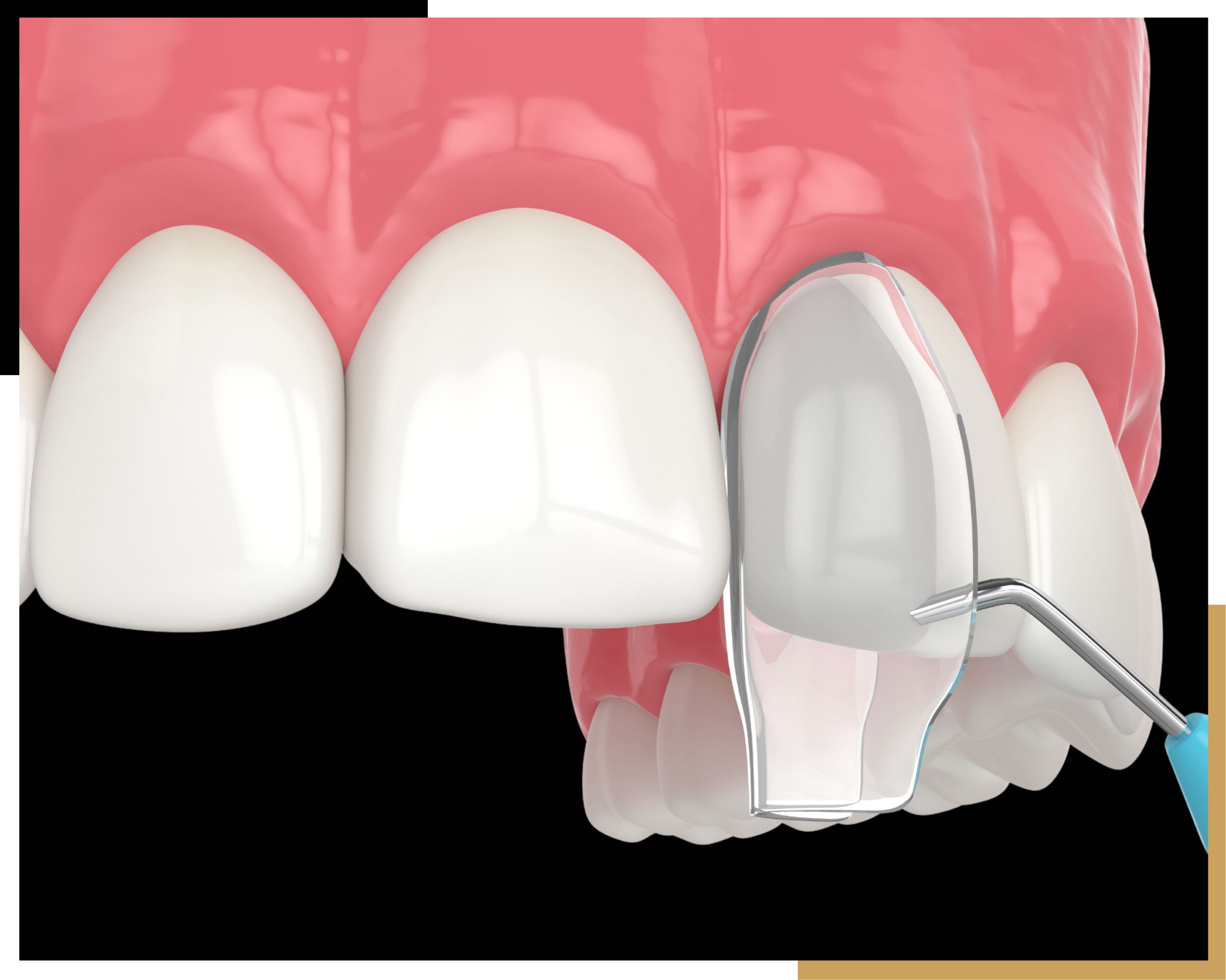 The resin is hardened with a special light, followed by polishing and adjustments to ensure a natural look.